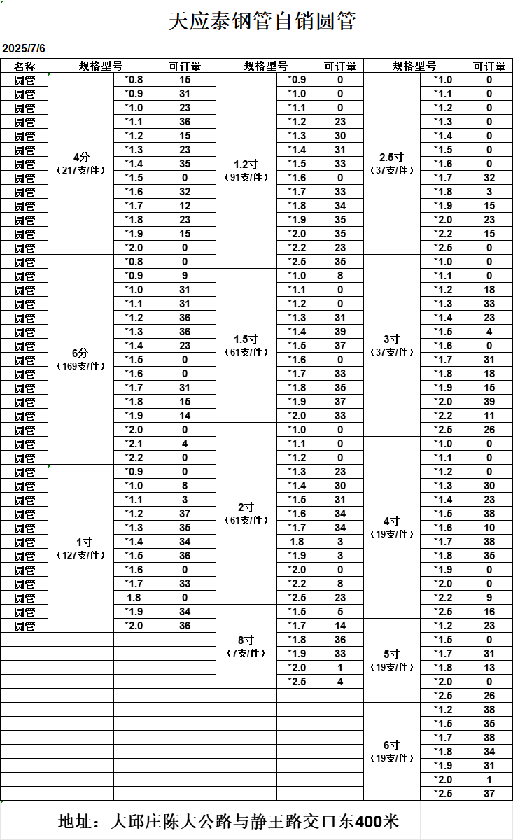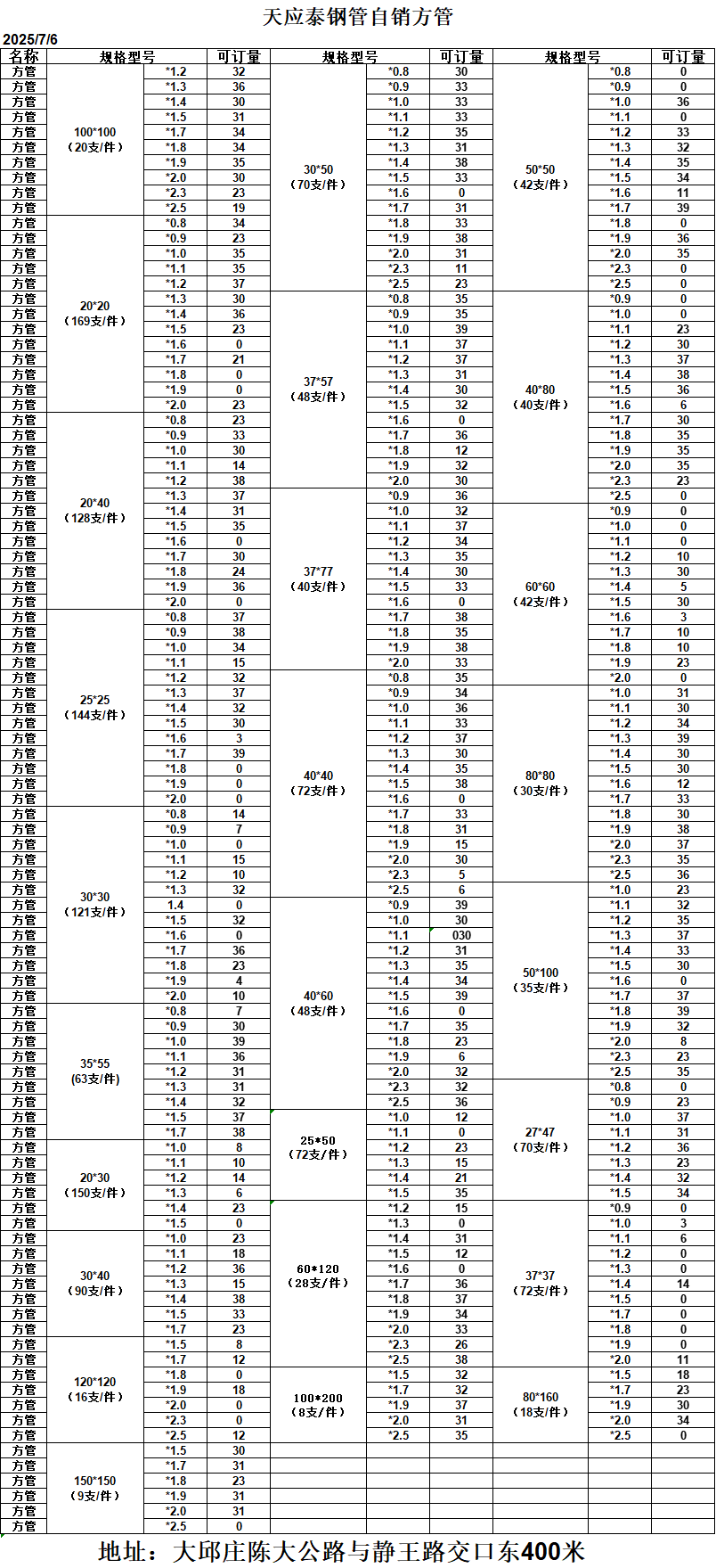 tyc7111cc太阳成集团7.6方管、圆管库存