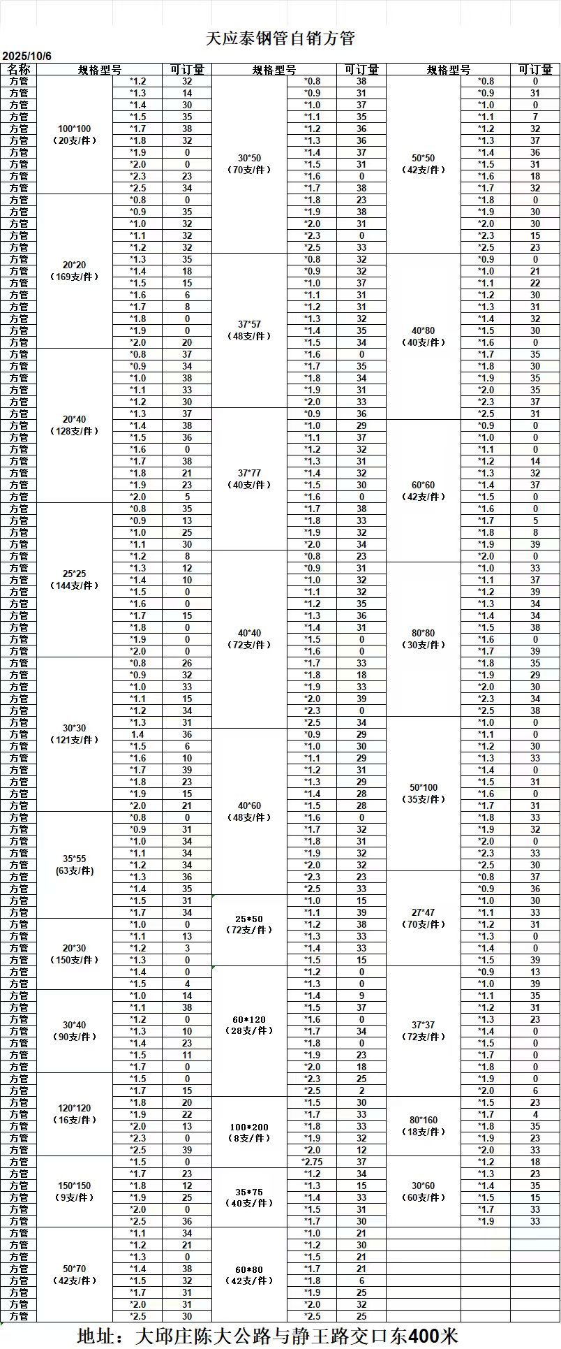 tyc7111cc太阳成集团10.6方管、圆管库存